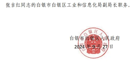 白银市任免通知的发布,对于白银市政的影响是深远的,它确保了政府机构的正常运转,为白银市的政治稳定和社会经济发展提供了保障,通过任免通知,优秀的领导干部得以选拔和任命,为白银市政注入了新的活力和动力。