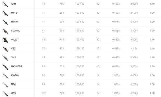 附录二:绝地求生武器数据更新历史记录。