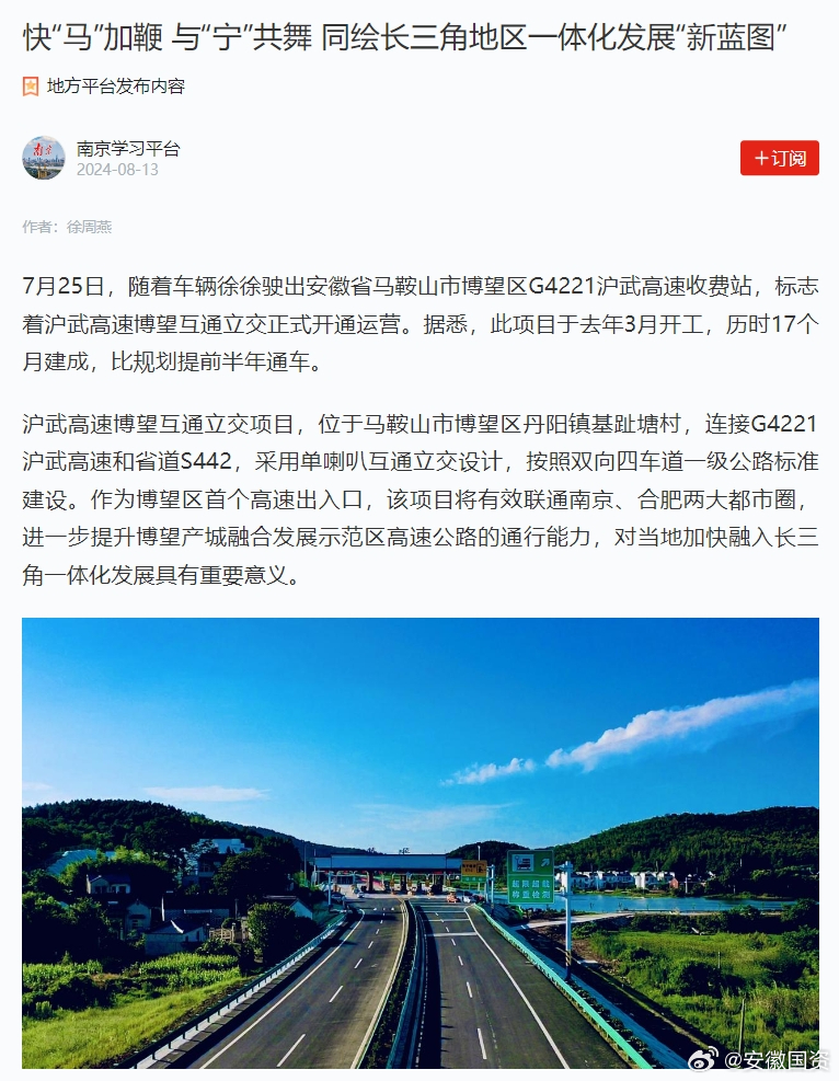 宁马高速作为连接长三角地区的重要通道,其扩建工程将进一步推动长三角一体化发展,扩建后,宁马高速将更好地服务于区域间的交通需求,促进长三角地区的经济交流与发展。