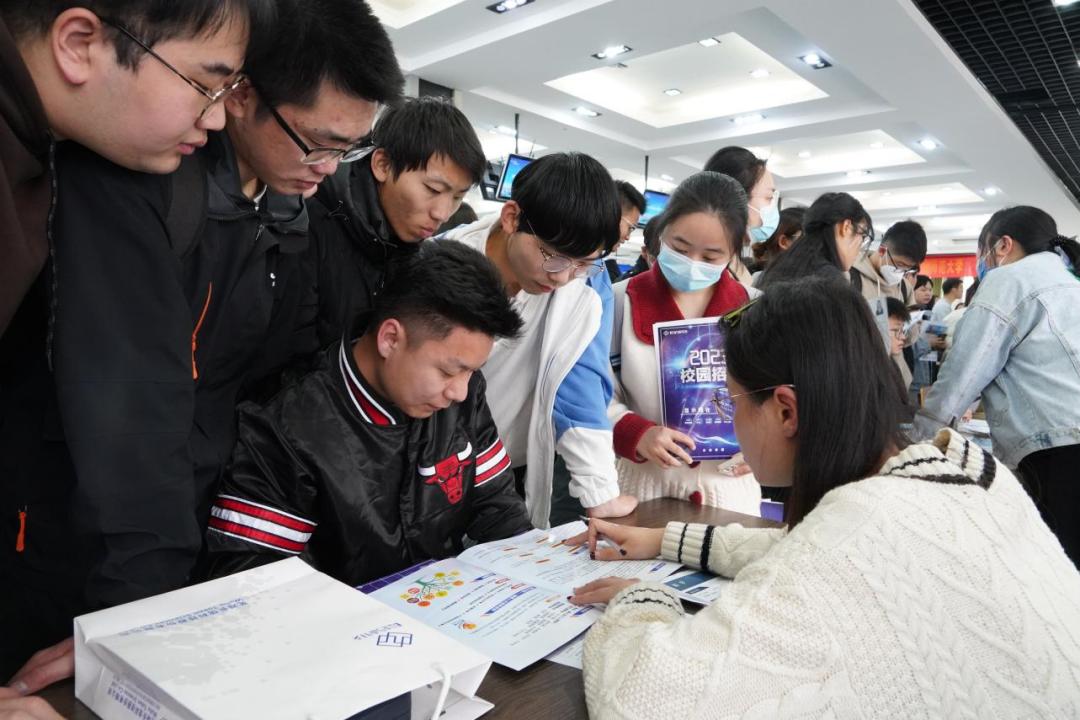 在人群中穿梭,小明看到了一个招聘展位前围满了人,他走近一看,原来是心仪的公司发布了最新招聘信息,他心中暗自激动,准备递交简历,这时,身边的朋友小李走过来,拍了拍他的肩膀:“看你一脸兴奋,是不是找到了心仪的职位?”小明点点头,笑着说:“是的,这次我一定要把握住机会。”小李也笑了:“祝你好运,我们一起加油!”