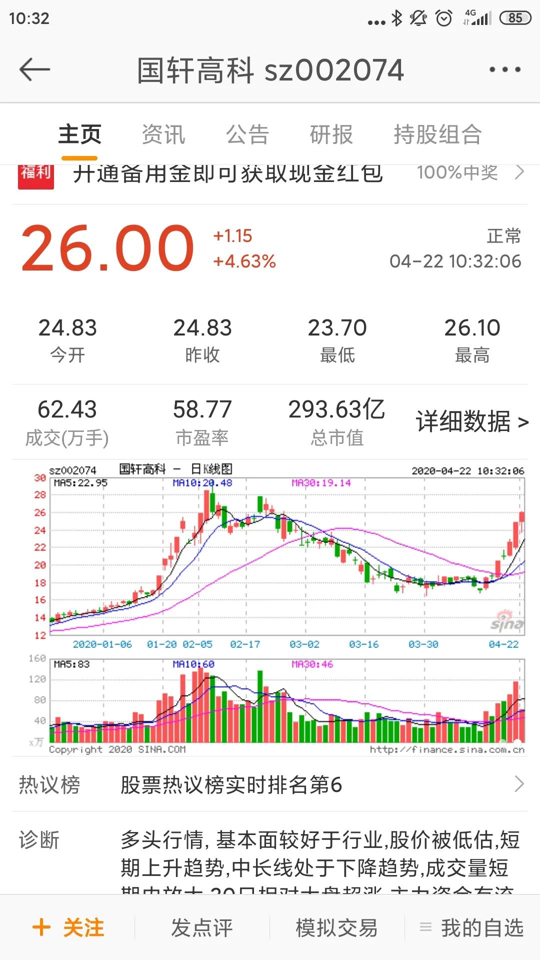 3、财务状况稳健:国轩高科在财务管理方面表现稳健,盈利能力较强,公司的盈利能力是股票价格上涨的重要因素之一,从财务角度看,国轩高科股票具有投资潜力。