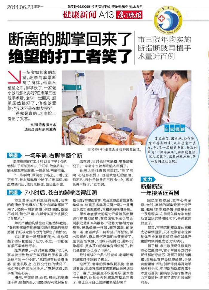 事件发生后,医疗团队迅速展开救治,通过先进的CT扫描和MRI技术,医生们对伤者的伤情进行了准确的评估,手术团队利用高精度的手术器械和先进的手术技术,成功进行了断足再植手术,术后,伤者进入了康复阶段,通过物理治疗和康复训练,逐渐恢复了足部功能。